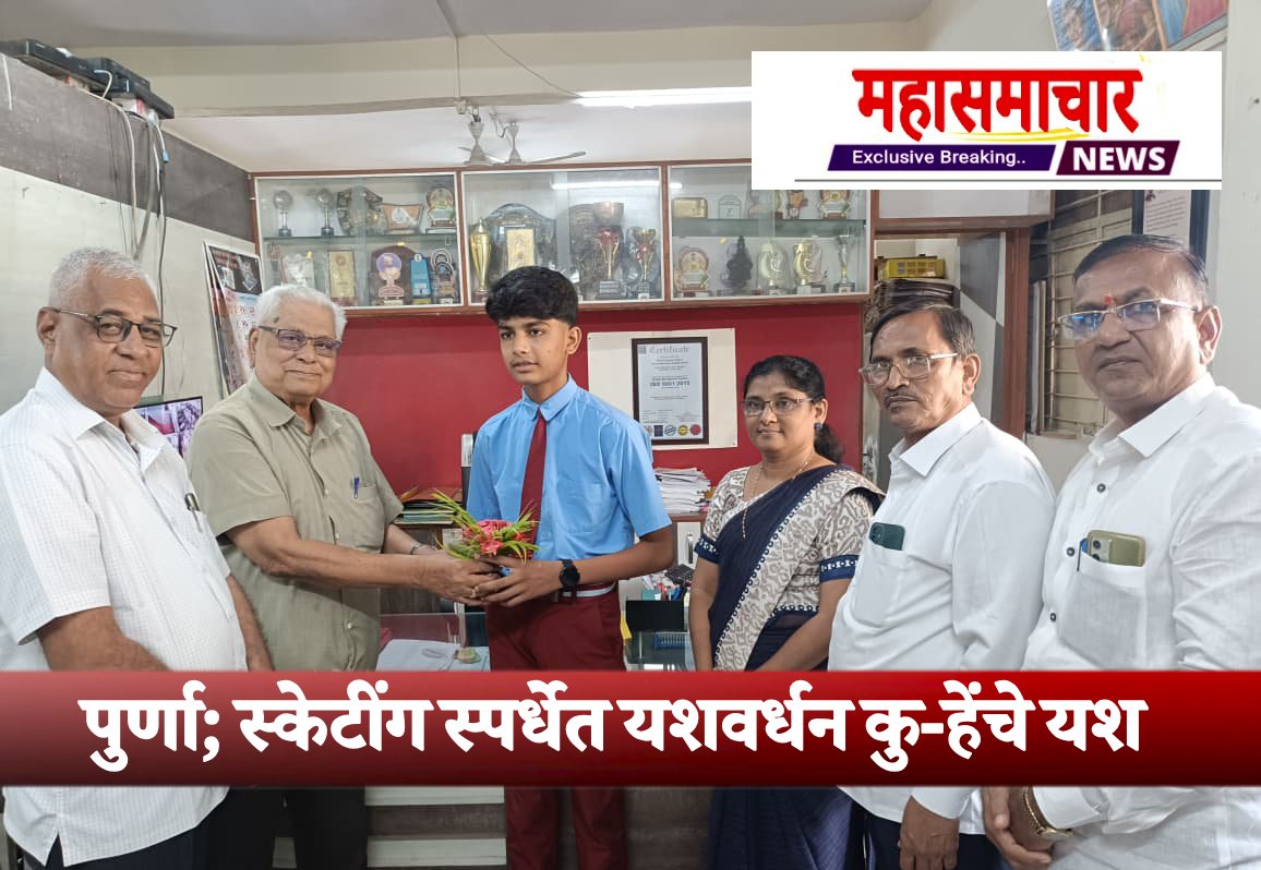 पूर्णा येथील यशवर्धन कु-हेचा स्केटिंगमध्ये जिल्हास्तरीय विजय
