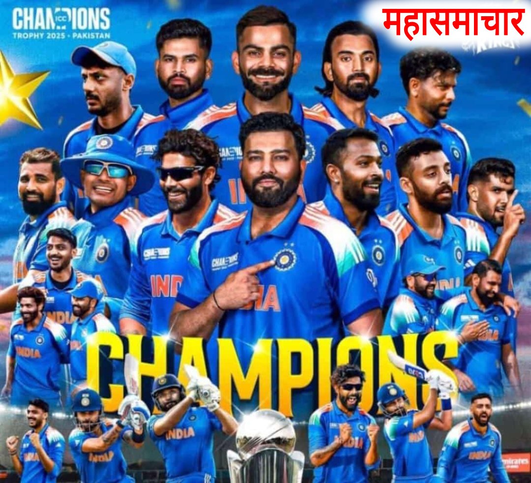 चॅम्पियन्स ट्रॉफीमध्ये भारताचा ऐतिहासिक विजय;ट्राॅफीवर तीस-यांदा कोरले नाव.!