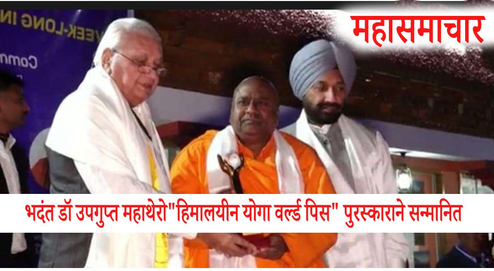 भदन्त डॉ.उपगुप्त महाथेरो यांना “हिमालयीन योगा वर्ल्ड पिस” पुरस्कार