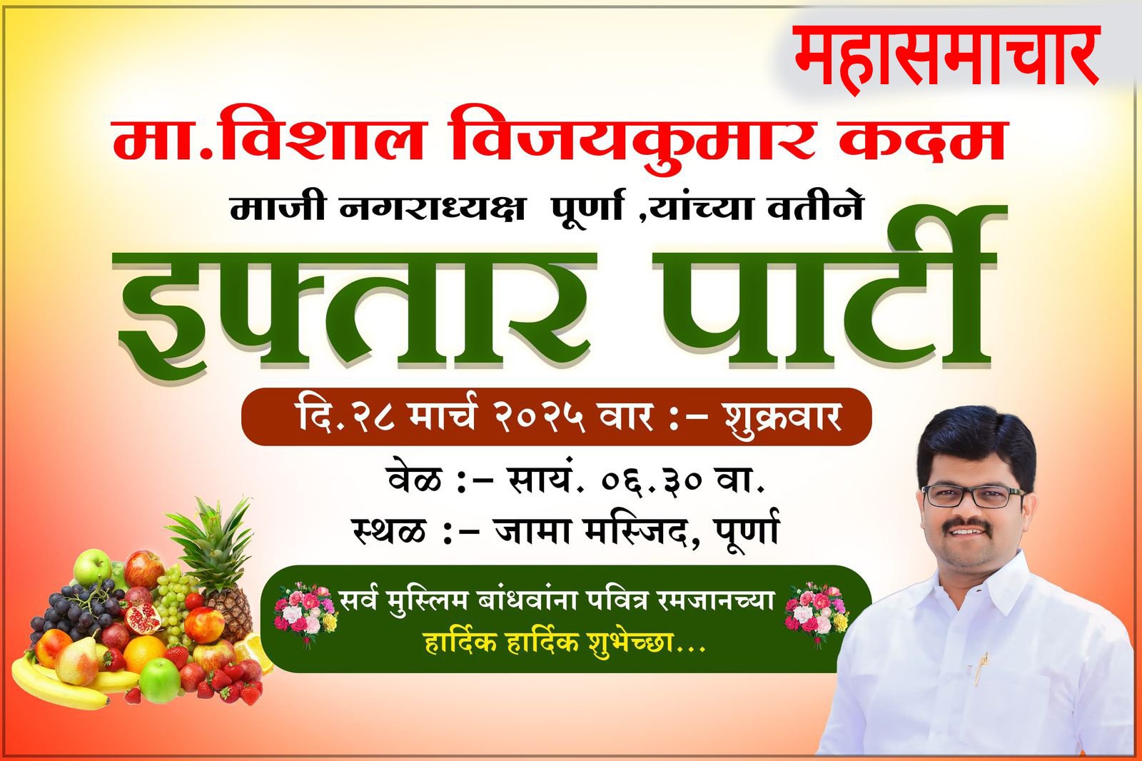 पूर्णेत विशाल कदम यांचेकडून ईफ्तारपार्टीचे आज आयोजन