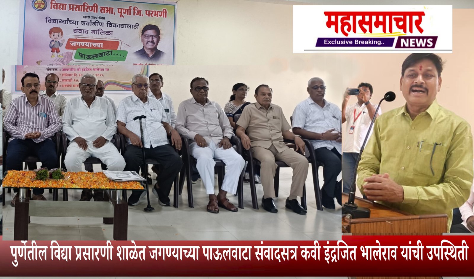 पुर्णा येथिल विद्या प्रसारिणी सभा शाळेत जगण्याच्या पाऊलवाटा संवादमालिका हा सहशालेय उपक्रम राबविला जात आहे.त्या मध्ये शनिवारी (ता.३०) ऑगस्ट रोजी साहित्यलेखन शब्दांची पाऊलवाट हे संवादसत्र आयोजिले होते.यावेळी मराठी साहित्यातील प्रसिद्ध कवी प्रा.इंद्रजीत भालेराव यांनी विद्यार्थ्यांशी संवाद साधला प्रसंगी ते बोलत होते.