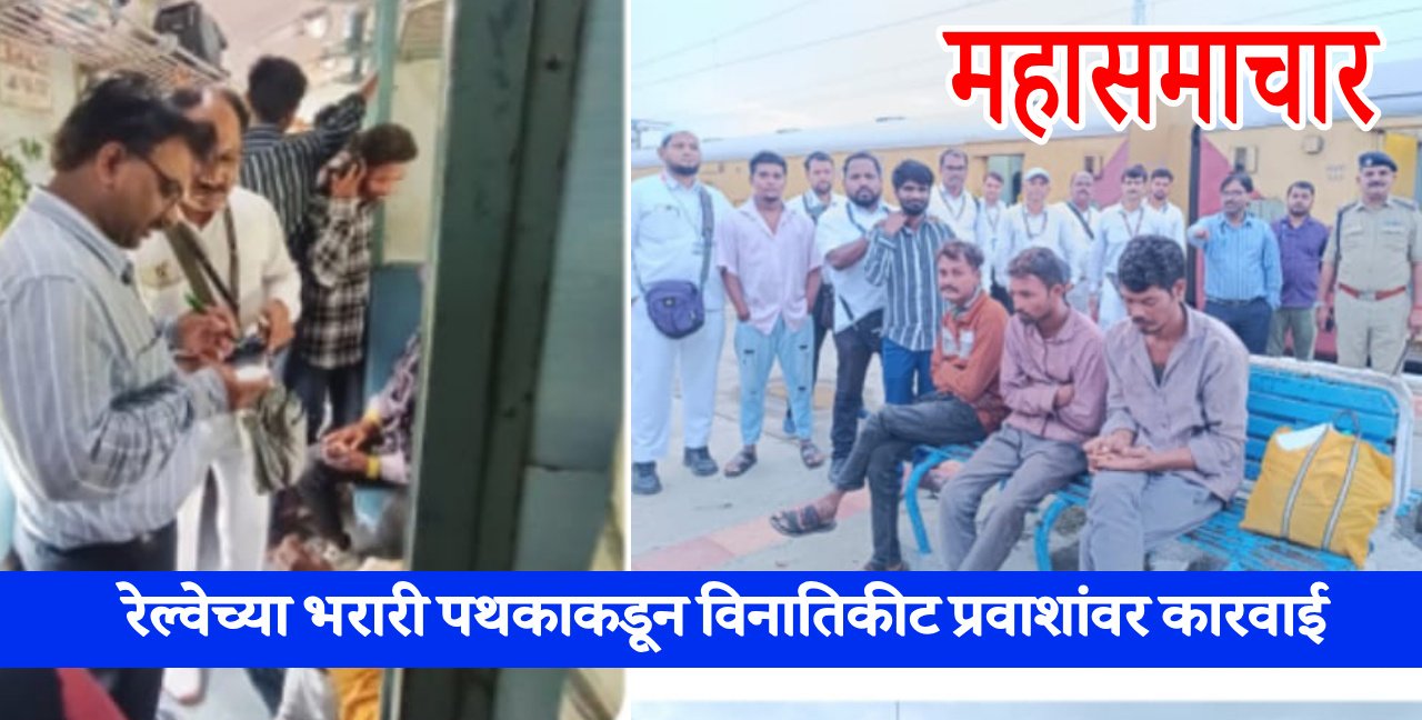 परभणी,नांदेड,अकोला लोहमार्गावर टिकीट तपासणी मोहीमेत ३३९ जणांना पकडले..!
