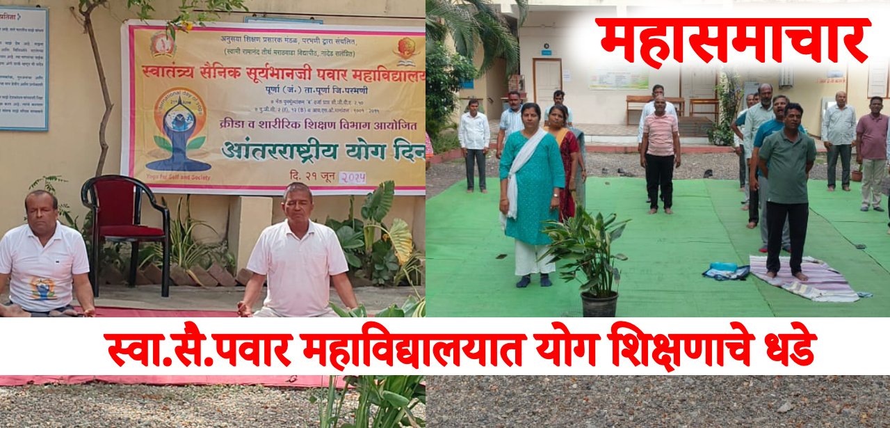 पूर्णेतील स्वा.सै.सुर्यभानजी पवार महाविद्यालयात योग दिनानिमित्त योगाचे धडे